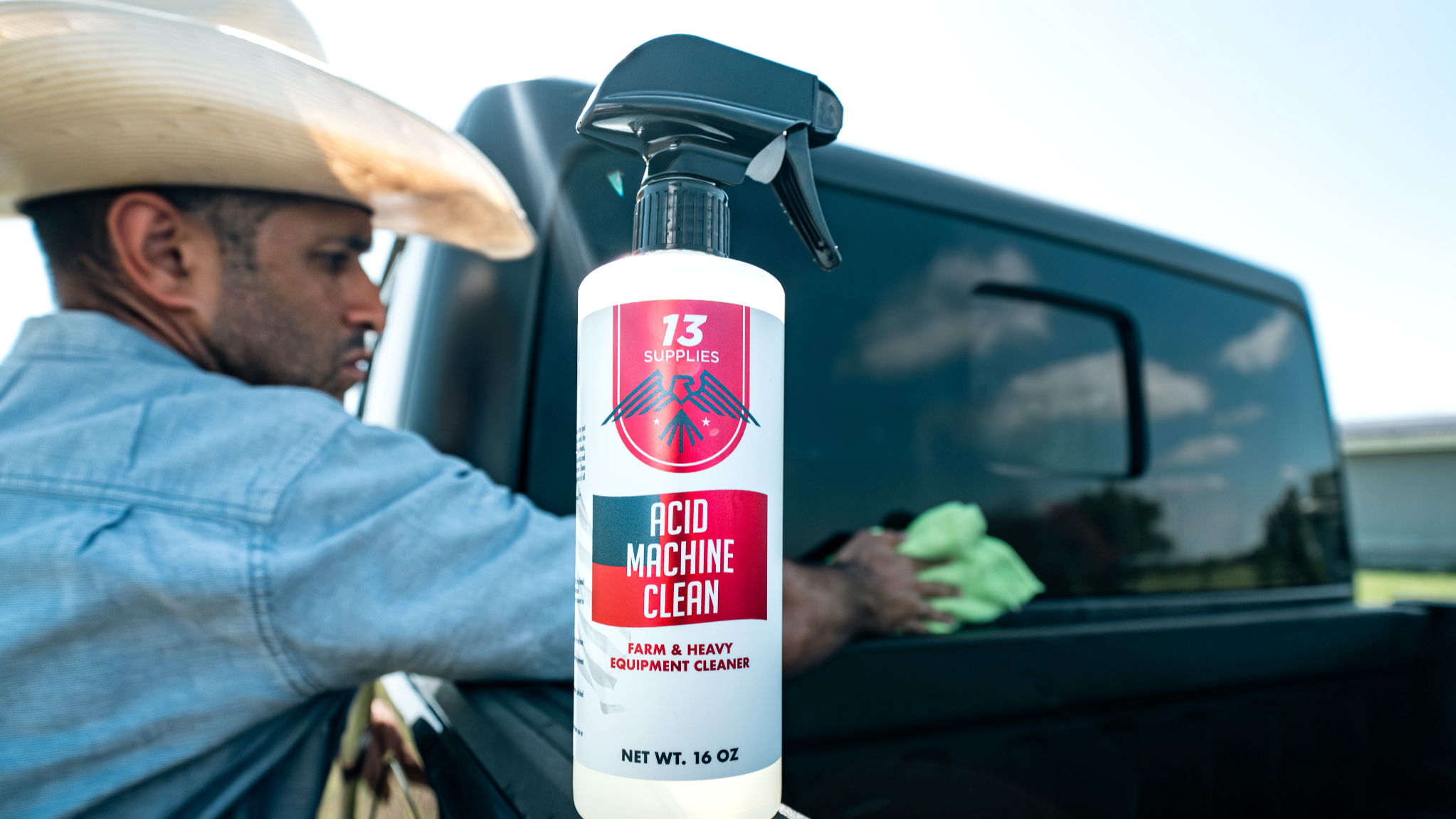 If it looks like it’s been stuck there since 1997, Acid Machine Clean is your go-to. For general grime or bug guts, stick with Machine Clean.
