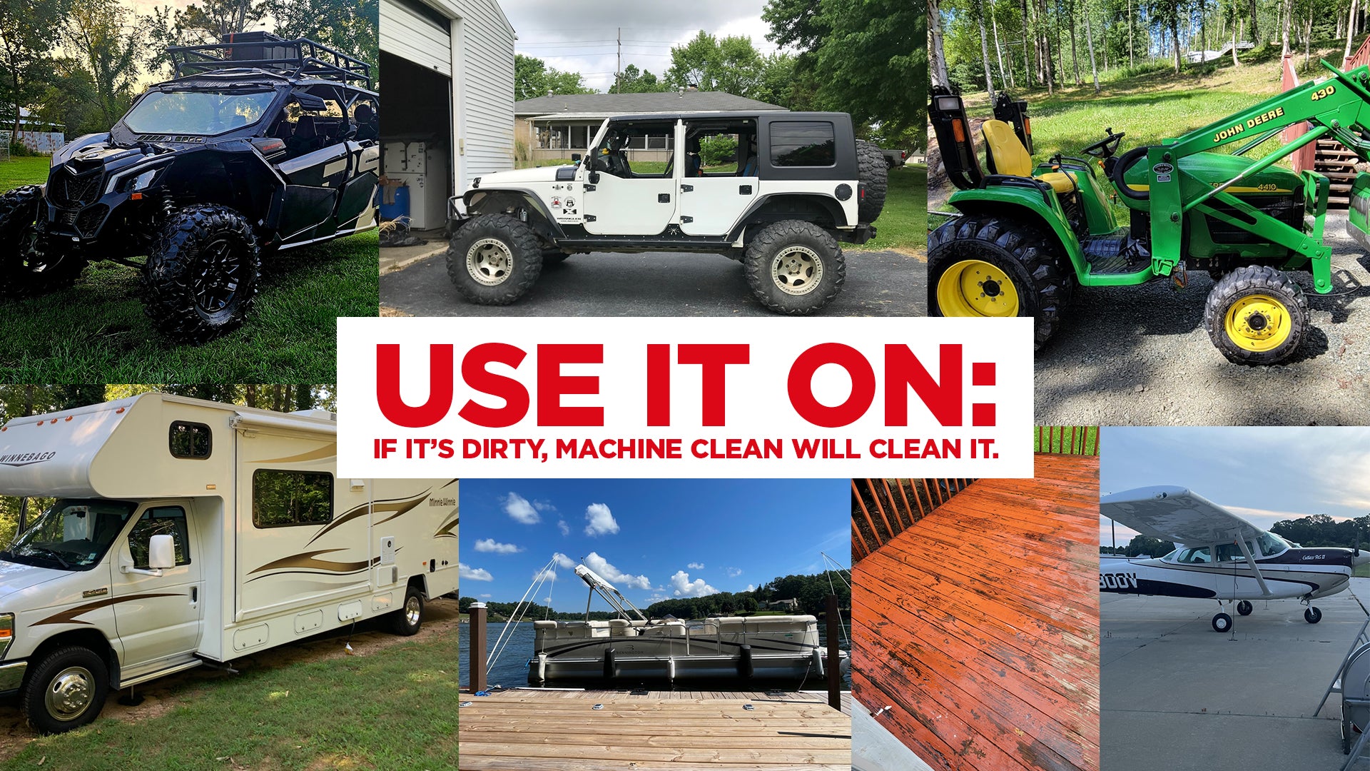 Cleans trucks, tractors, RVs, boats, and outdoor equipment fast